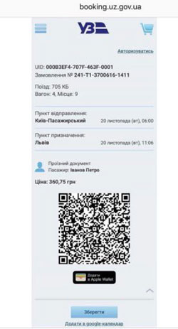«Укрзализныця» разрешила хранить билеты в Apple Wallet.