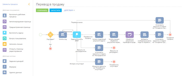 Пример бизнес-процесса - Перевод в продажу, построенного в нотации:
