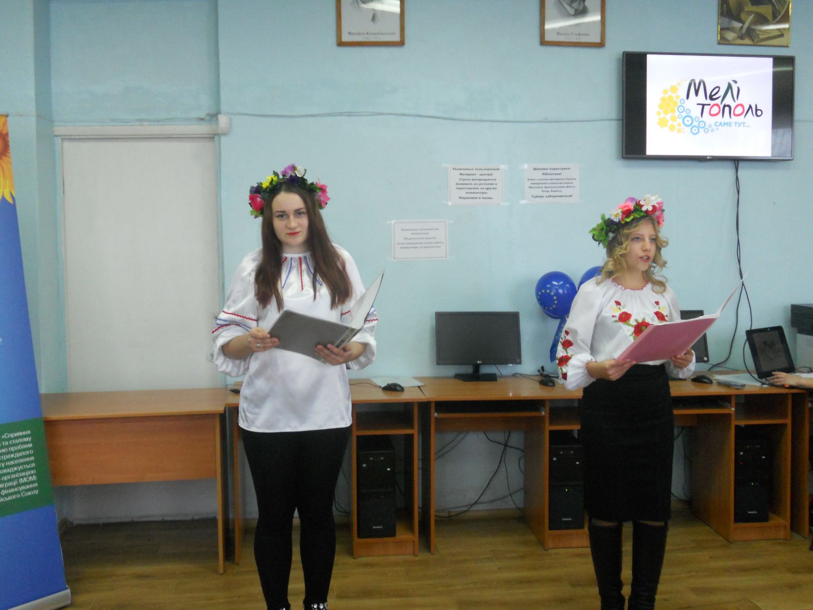 Мероприятие посетили студенты Мелитопольского высшего профессионального училища, которые подарили присутствующим свои творческие номера. В исполнении Валерии Букши прозвучали песни «Мамина сорочка» и «Чорнобривці», которые подхватили все гости библиотеки. Также студентка прочла авторское стихотворение «Сподіванка». А Елена Портян познакомила всех со своим авторским стихом «Мой город - Мелитополь».