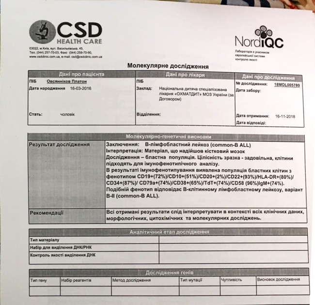 Врачи, получившие результаты анализов, полны оптимизма – ребенка можно спасти, болезнь не запущена. Но чтобы победить рак, нужно длительное и дорогостоящее лечение. Сейчас ребенок находится в гематологическом отделении Запорожской детской областной клинической больницы.