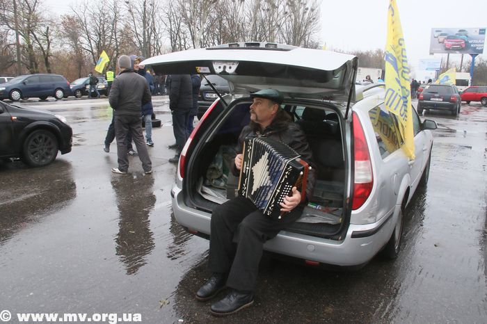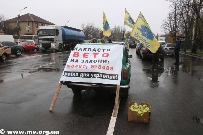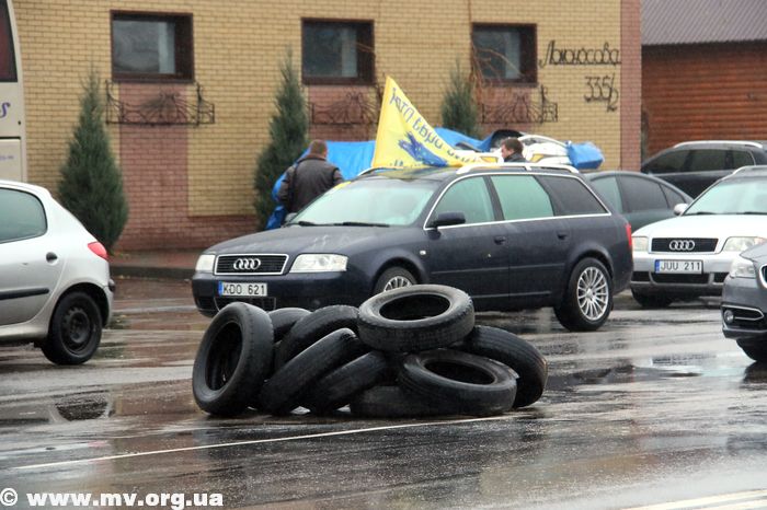 У нас, напомним, активисты, выстроили свои автомобили вдоль трассы на северном выезде из города и ходят по пешеходному переходу, блокируя движение транспорта. К мелитопольским активистам присоединились их соратники из Бердянска, приехавшие на нескольких автомобилях. В том числе пригнали «Газель», из которой выгрузили скаты, но уверяют – поджигать их не собираются, а просто демонстрируют как символ Майдана.