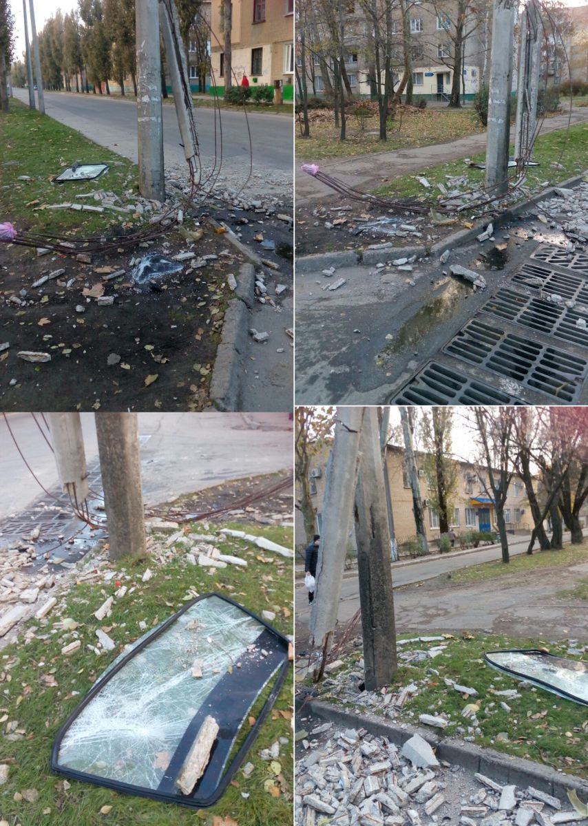"Сегодня ночью, возле нарсуда был сбит столб... авария, по всей видимости, масштабная... стекло... большая лужа масла, а часть столба просто в крошки!!! Обратите внимание, как торчат арматурины!!!! И как этот вопрос решен!!!! Их перевязали пакетиком-маечкой"