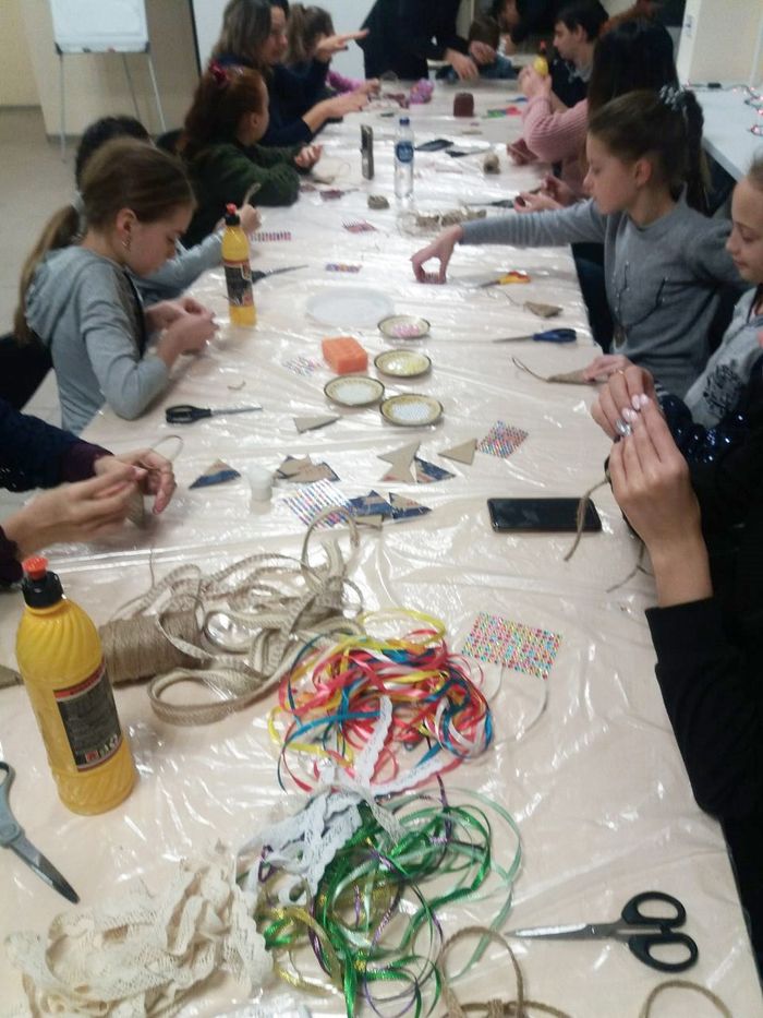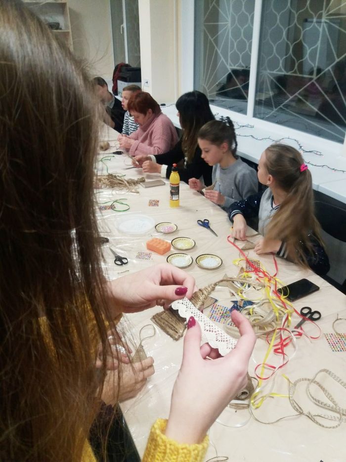Мелитопольцы увлеченно работали над своими поделками и в результате получили необычное елочное украшение.