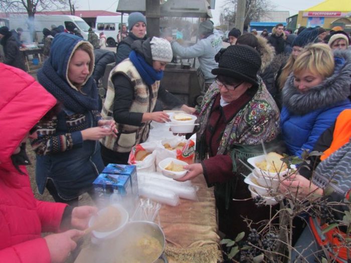 Мероприятие проходило на главной площади в Азовском. Всех, кто пришел отметить этот славный праздник, угощали душистым казацким кулешом и вкуснейшей шурпой. Для приготовления блюд фермер Сергей Дзямко подарил громаде целого барана. На празднике можно было попробовать и другие вкусные блюда.
