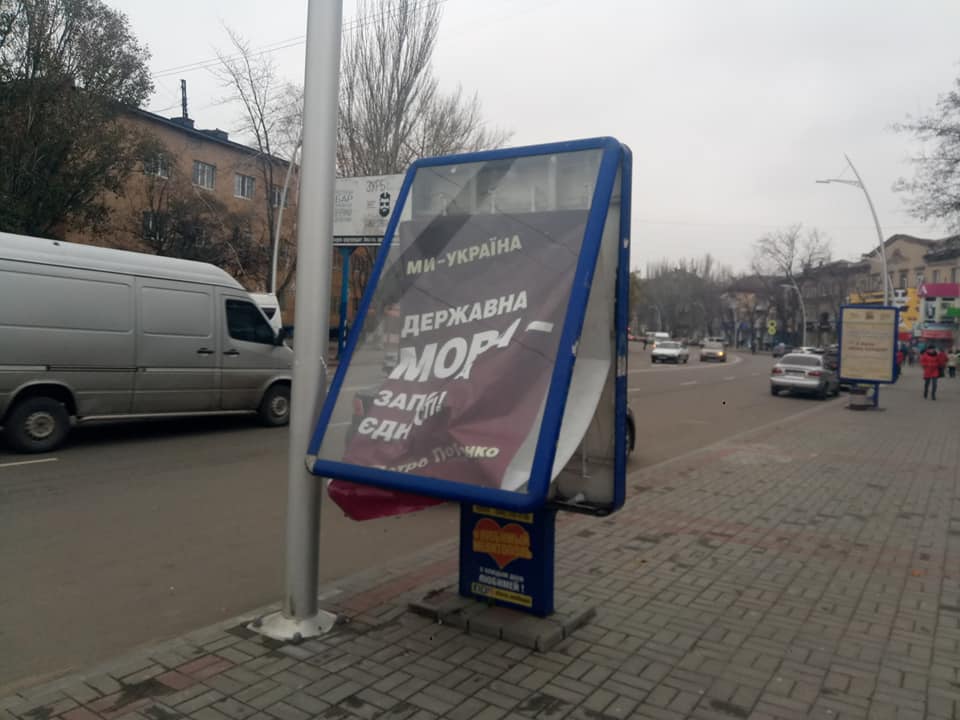 В Мелитополе вандалы разбили ситилайт (ФОТО)