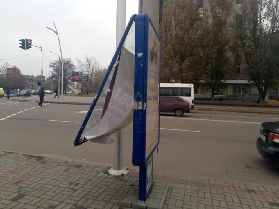 Сити-лайт на главном проспекте города повредили вандалы.