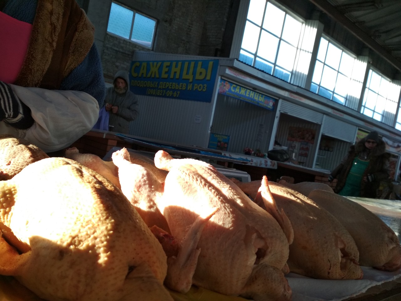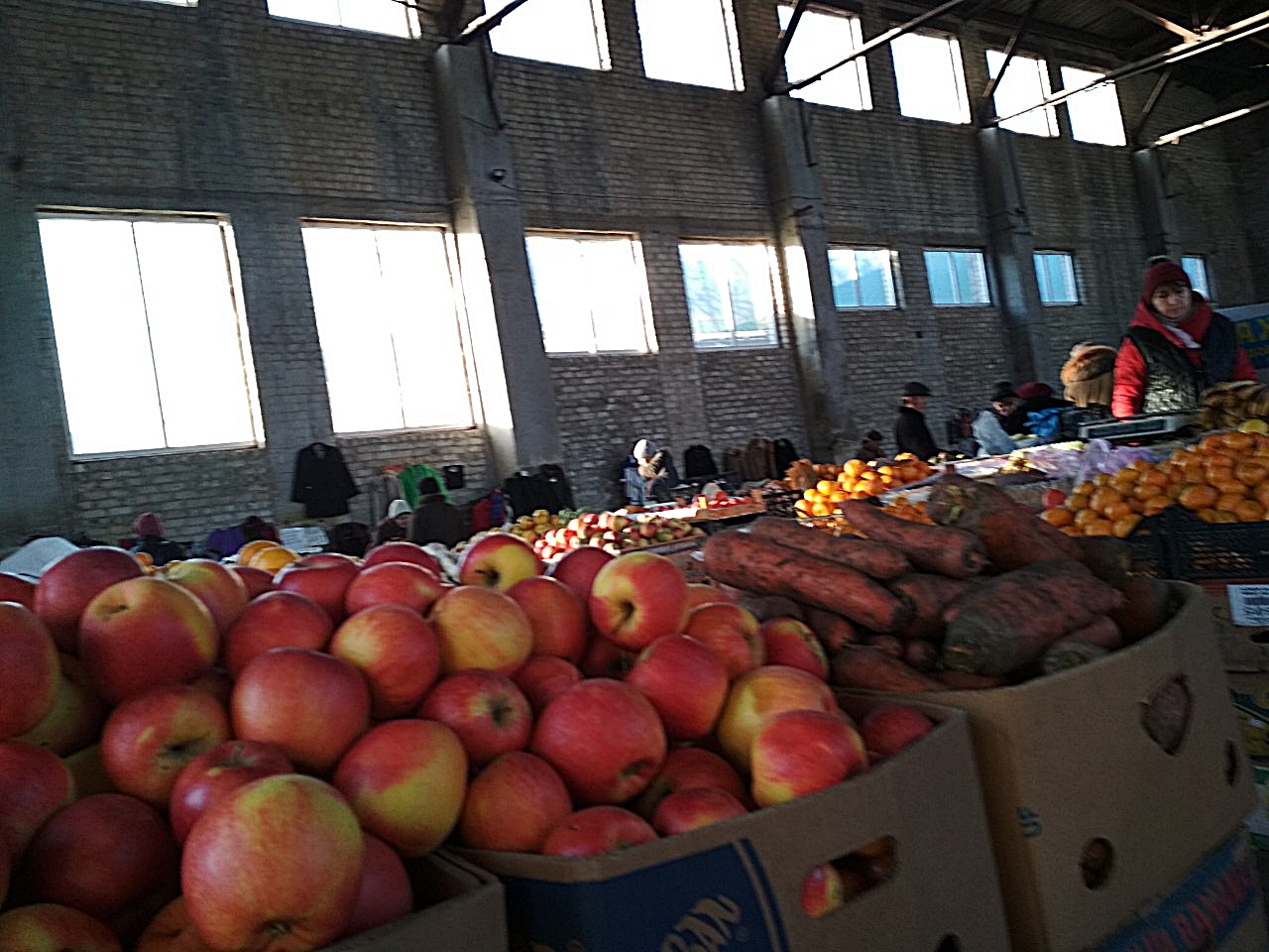 Сегодня утром температура воздуха была минусовая, а поэтому заботливые рыночники, дабы уберечь фрукты и овощи от замерзания, накрыли их теплыми одеялами.