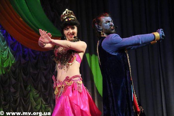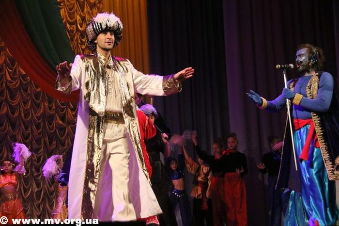Концерт состоял из двух отделений. Первое отделение началось известным мюзиклом «Бременские музыканты» о веселых бродячих артистах. За ним последовал спектакль «Летучий корабль». Присутствующие разделили с трубочистом Иванушкой переживания и боролись за руку и сердце царевны Забавы. Сказочная атмосфера воцарилась в зале, когда на сцену вышли герои арабской сказки «Алладин и волшебная лампа». Отменная игра актеров сделала свое дело: зрители наградили актерскую команду жаркими аплодисментами.