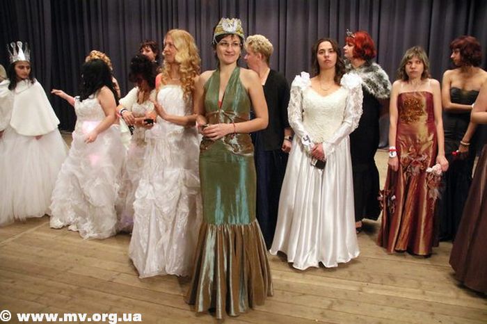 Задание участниц – пройти дефиле в вечернем платье и показать себя актерами спектакля «Спящая красавица». Короны на резиночках, белоснежные кружева, платья в пол – это девушки. Плащ, украшенный «мехом горностая», небрежно накинул на плечи король. А принц в серебряных блестящих шортах и туфлях с бантами напоминал о странной мужской моде эпохи Возрождения.