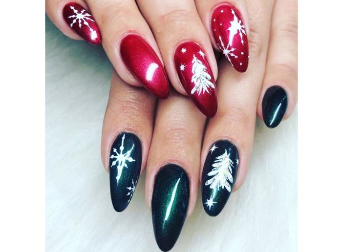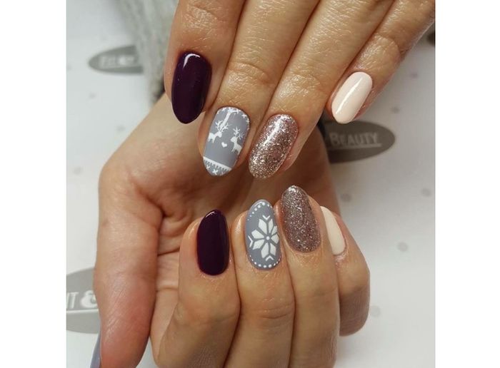 Чего только не предлагают изображать мастера маникюра в Instagram – и северных оленей с красными носами, и героев нашумевшего мультсериала "Холодное сердце", и еловые веточки, украшенные разноцветными шарами. Мы собрали для вас самые яркие примеры, которые смело можно использовать.