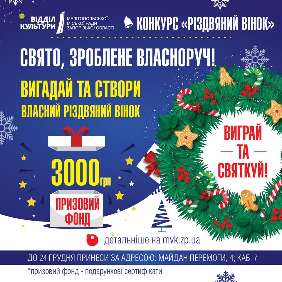 В Мелитополе объявлен конкурс на изготовление новогоднего украшения "Рождественский венок".