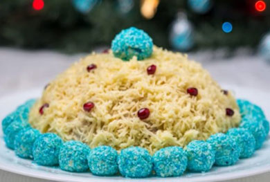 Удивите гостей оригинальным и вкусным салатом "Шапочка Снегурочки" на новогоднем столе