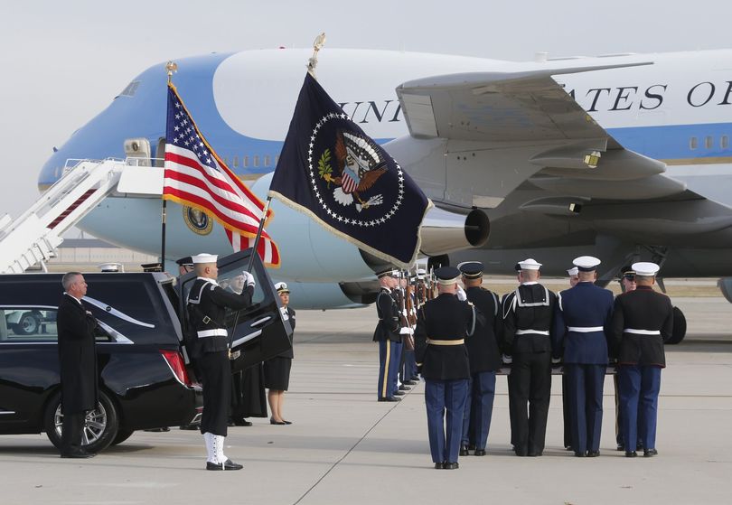 После церемонии гроб с телом Джорджа Буша был доставлен самолетом ВВС в Хьюстон, где в местном соборе состоится семейное прощание с бывшим президентом.