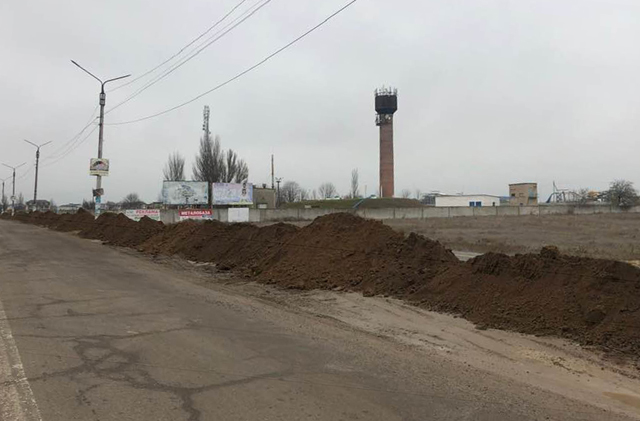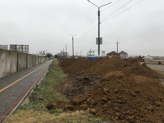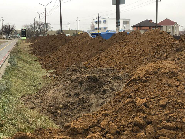 На Проспекте Азовском начали выполнять земляные работы по засыпке рва между дорогой и новым тротуаром. Это первый шаг реализации проекта по капитальному ремонту части Проспекта. Участок проспекта, подлежащего реконструкции, берет начало от магазина «Транзит» и заканчивается у Автовокзала Кирилловки.