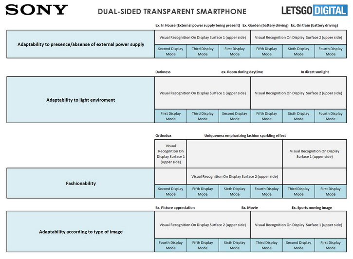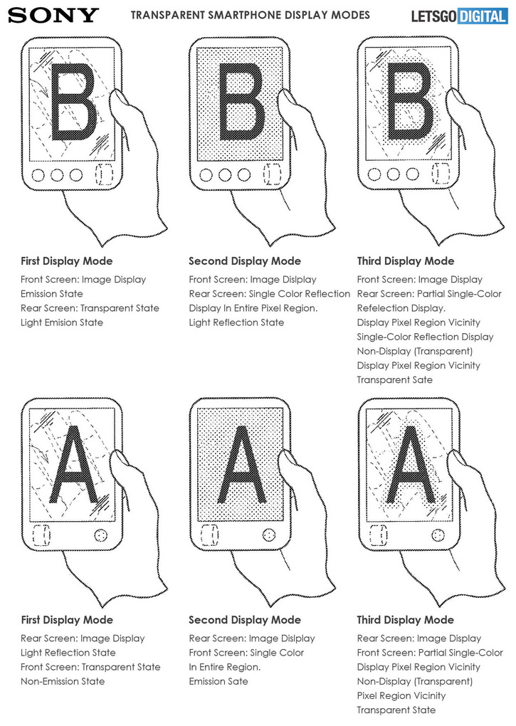 В патенте описывается девайс с двумя дисплеями, расположенных «спина к спине», которые могут работать в различных режимах прозрачности: в прозрачном, полупрозрачном и непрозрачном для каждого дисплея.