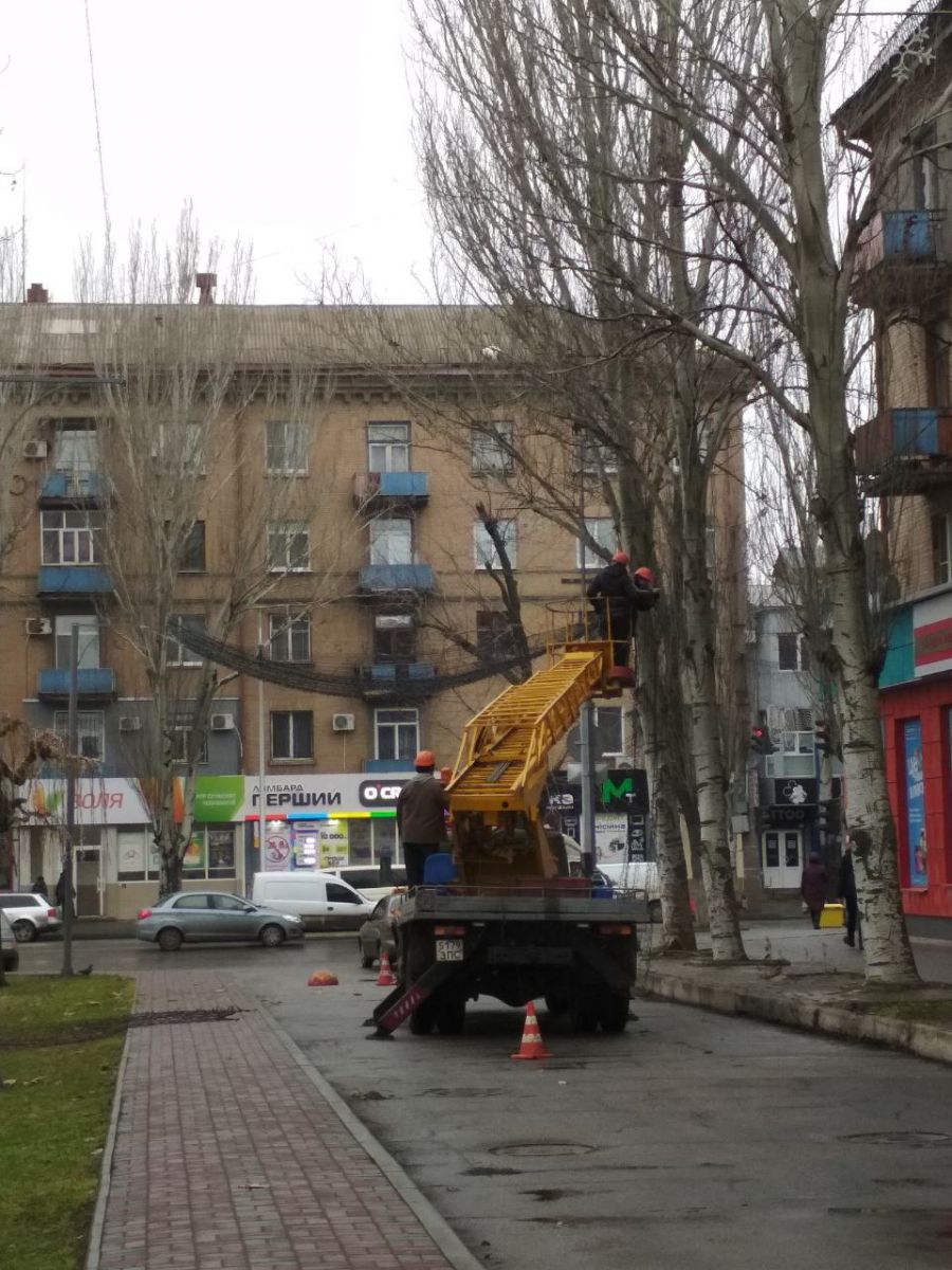 А тем временем сотрудники КП «Горсвет» развешивают вдоль подъездных дорожек пл. Победы гирлянды, которые горожане успели прозвать "Елисейскими полями". Работают сразу в несколько рук и в две машины. Поэтому светящиеся арки появляются сразу с двух сторон.