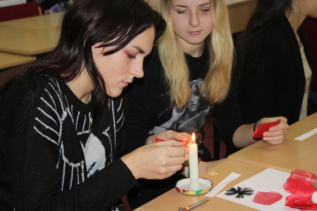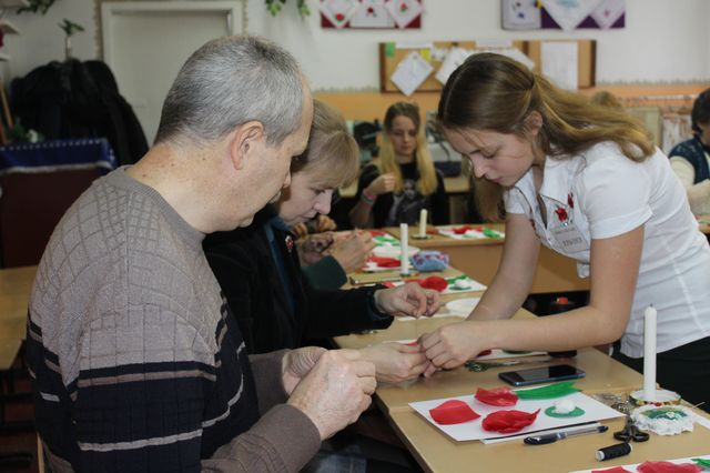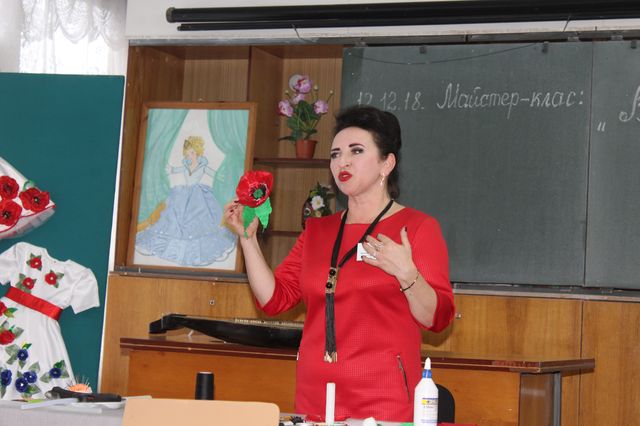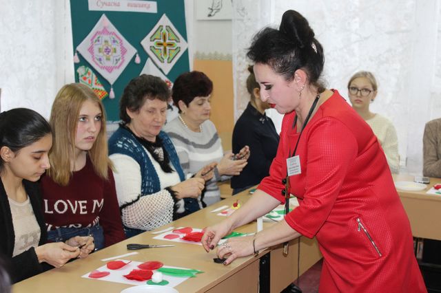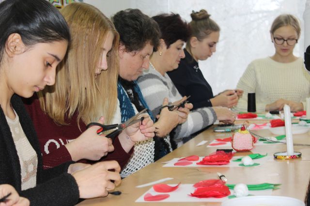 Попробовать свои силы в изготовлении тканевых цветов собрались учащиеся и преподаватели учебного заведения, среди которых нашелся даже один мужчина. Участники изготавливали мак – цветок, о котором слагают легенды. Собственно, с одной их них Ирина Анатольевна и начала свое занятие: