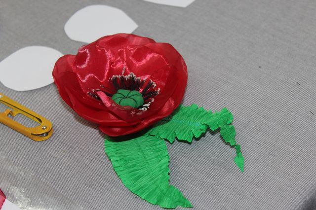 Затем все составляющие склеиваются вместе. По такому же принципу, заметила И. Глыбина, можно изготавливать и другие цветы, не только маки. Использовать их можно в качестве декора для одежды, украшений в прическу и многого другого.