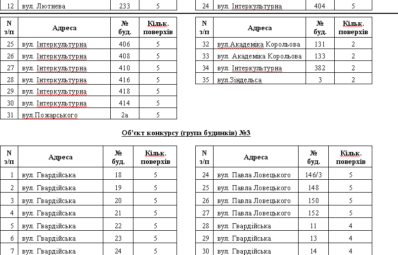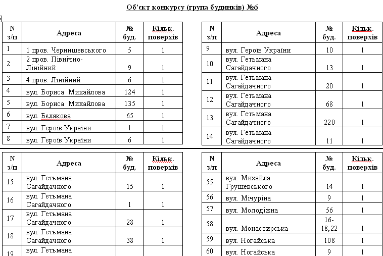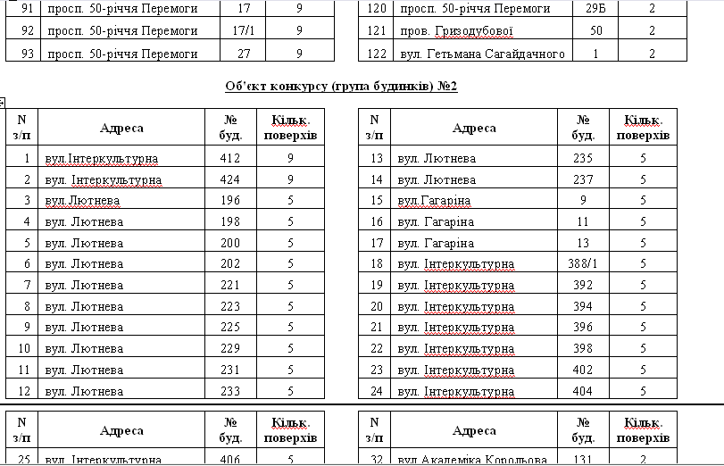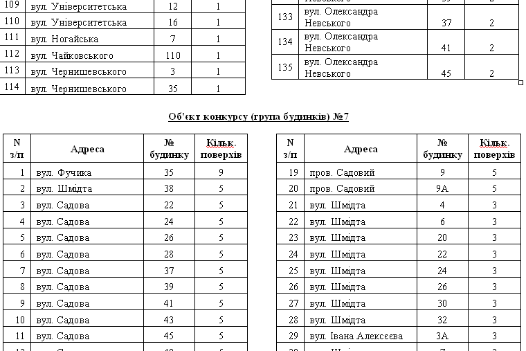 Вот как разделены дома по лотам для участия в конкурсе