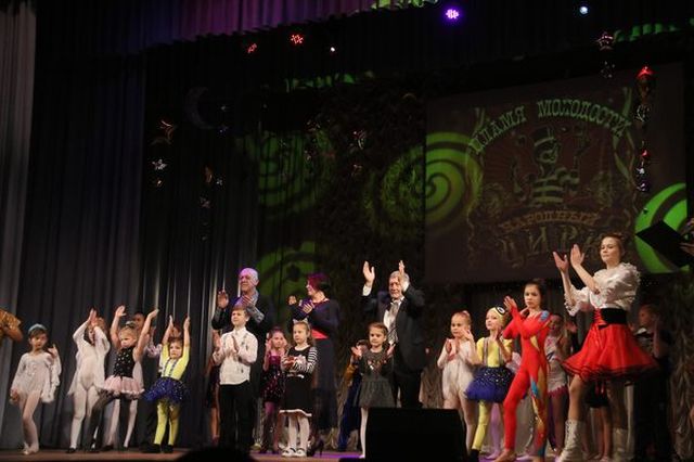 В конце вечера на сцену пригласили руководителей цирка «Пламя молодости» Виктора Переверзева и Александра Крыжановского, а также ветеранов цирка.
