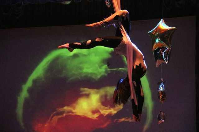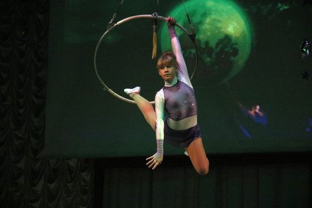 А затем участники театра «Пламя молодости» показали опасные номера – гимнастка в петлях и баланс на катушках.