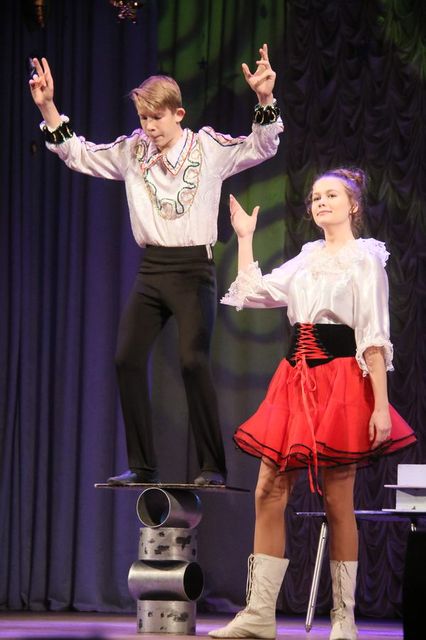 Помимо участников цирка, на сцене выступила маленькая воспитанница народного театра песни «Шоколад» с песней «Топни ножка моя», образцовый ансамбль современного танца «Гилея Дэнс» и солисты народного ансамбля спортивного бального танца «Радуга» с румбой.