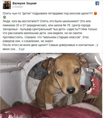 Запорожские школьники ради забавы подрывают щенков петардами (ФОТО)
