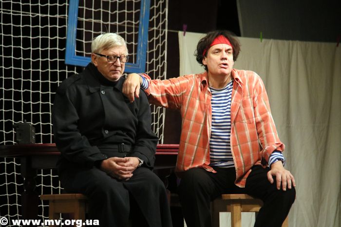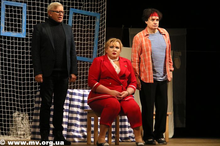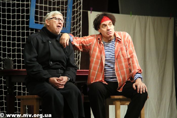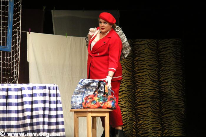 Вечер. ДК им. Т. Шевченко. В главном зале гаснет свет и открывается занавес. На сцене видны очертания минимальных декораций и силуэты двух мужчин. Это со спектаклем по мотивам пьесы Миро Гавра «Муж моей жены» в Мелитополь приехал продюсерский центр «Колизей».