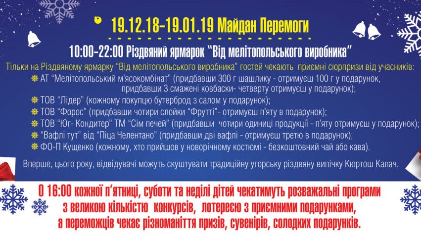 Только на Рождественской ярмарке "От мелитопольского производителя" гостей ждут приятные сюрпризы от предпринимателей нашего края.