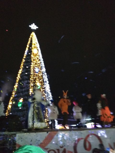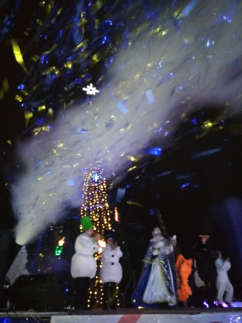 Именно с его помощью и зажглись огни на новогодней елке. Событие также знаменовалось ярким салютом из мишуры.