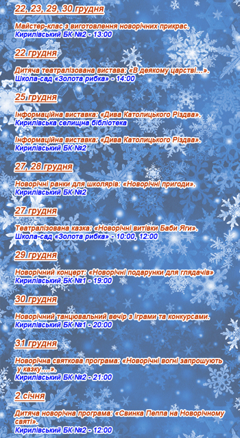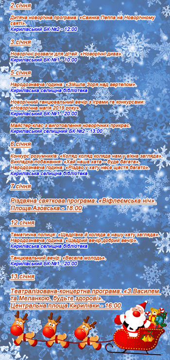Программа празднования Нового года-2019 в Кирилловской громаде