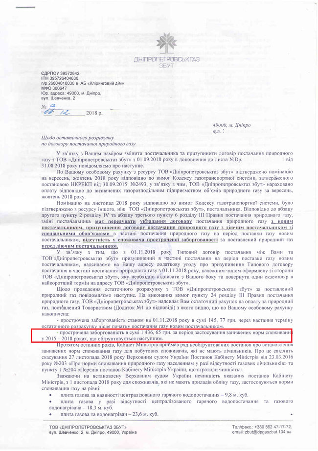 При цьому багатозначно зауважили, що покищо грошей з нього брати не будуть, бо уряд нібито щось от-от вирішить. Хоча насправді деяким споживачам газзбути вже надіслали листи та рахунки з нарахуваннями "заднім числом" з вимогою сплати такі рахунки.