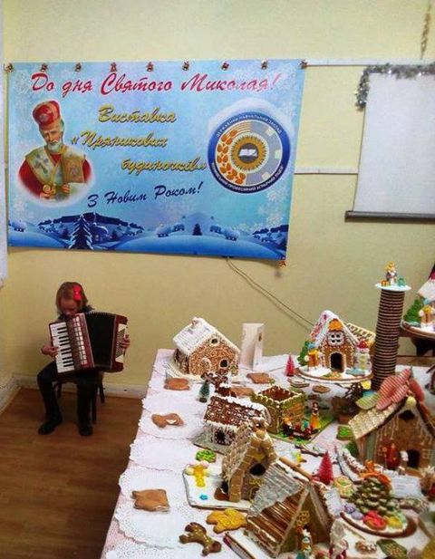Ко Дню Святого Николая в помещении Акимовской картинной галереи состоялась выставка пряничных домиков.