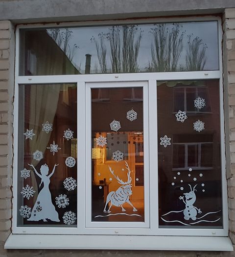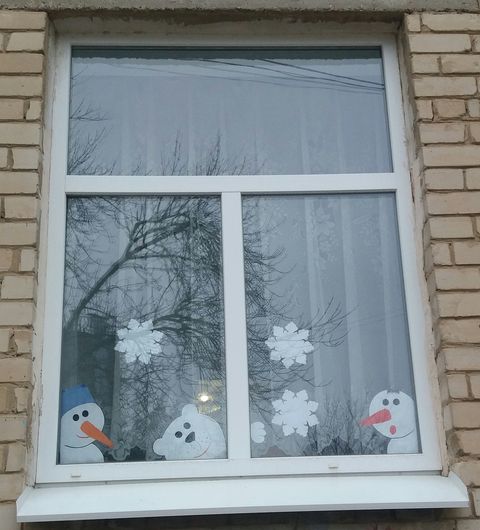 В садике № 29 «Золотой петушок» на микрорайоне воспитанников встречают снеговик Олаф, герой мультфильма «Холодное сердце», и улыбчивый Мишка, а окна украшают веселые праздничные композиции. Декор быстро превратился в фотозону для детей и их родителей.