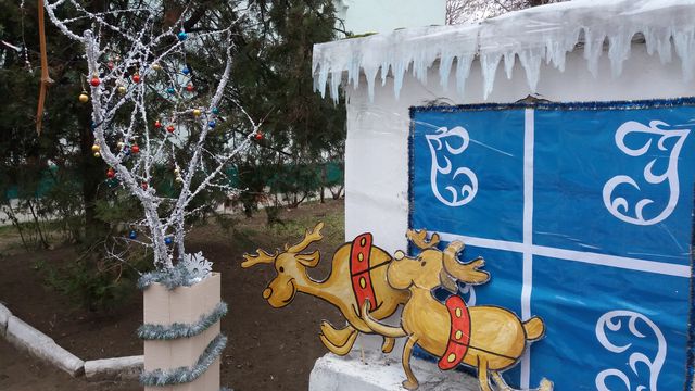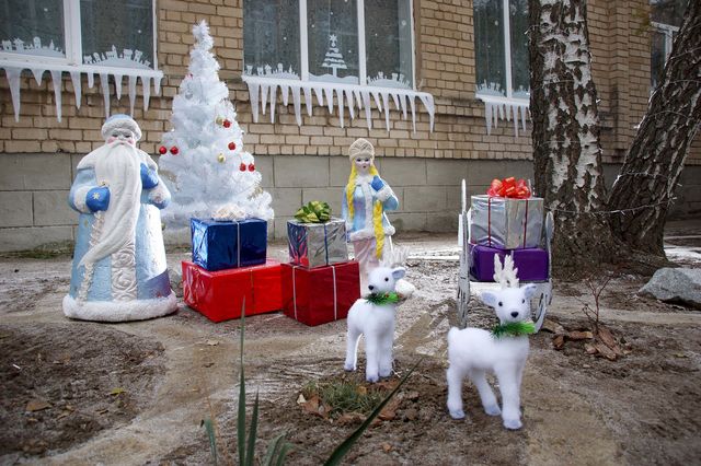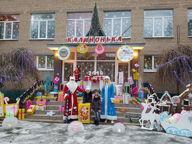 Новогодними мотивами окна украшены и в детском саду № 40 «Калинка». Вход в учебное заведение превратился в резиденцию Деда Мороза, заваленную подарками. Кроме того, в саду заработала «Почта Деда Мороза».