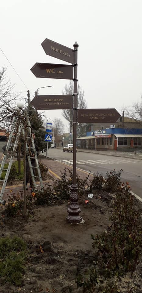 Как и обещало руководство поселкового совета, Кирилловку начали украшать столбы с указателями, которые произведены в винтажном стиле. Жителям поселка новые объекты инфраструктуры очень понравились.