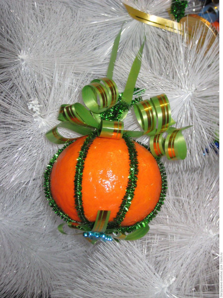 Хорошим украшением елки станут мандарины. К ним можно прикрепить бутоны гвоздики, выложив, таким образом, определенный рисунок. А чтобы украшение стало еще ярче, можно украсить мандарины праздничными лентами и небольшими бантиками. Это украшение можно считать бюджетным, так как мандарины стоят 28 грн./кг. Набор бантов в «АТБ» обойдется в 6 грн. Стоимость ленты тоже небольшая – от 2,5 грн./м (зависит от ширины и материала).