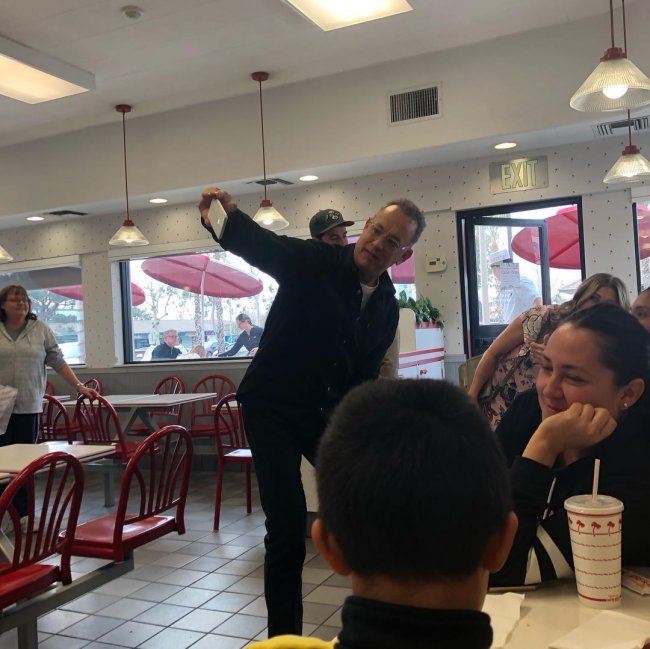 Удивленные посетители закусочной тут же стали делиться фото с ним в соцсетях. По словам очевидцев, Хэнкс вел себя очень приветливо и дружелюбно, уходя актер пожелал всем счастливого Рождества.