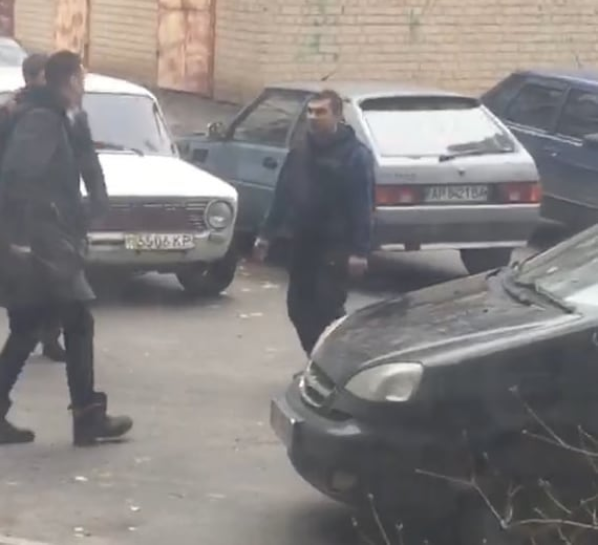 С чего начался конфликт, не ясно. Запись начинается с момента, когда группа мужчин пытается окружить парня, держащего в руках топор. Похоже, рубить он никого не собирался, поскольку держал инструмент лезвием вверх.