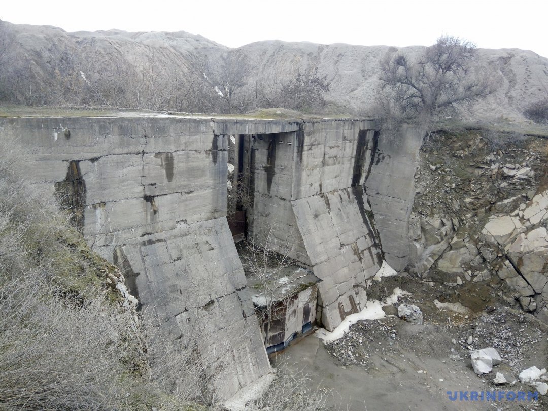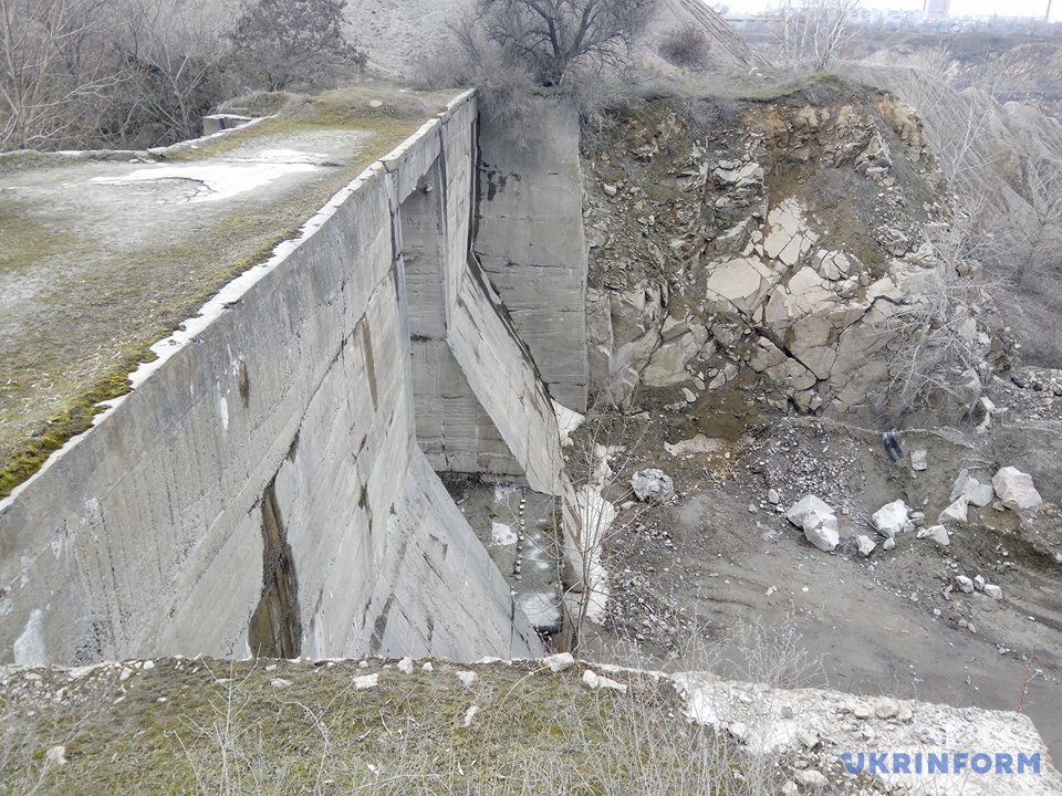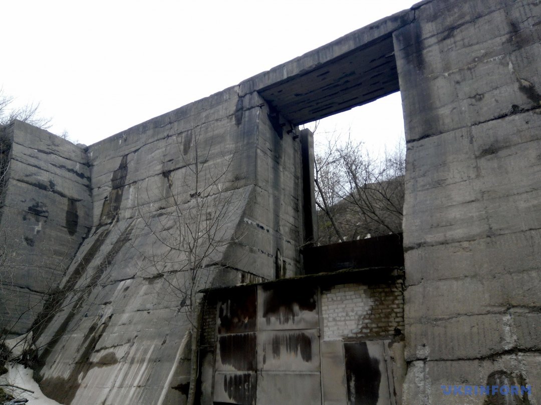 Внушительное строение плотины, ныне находящееся непосредственно за одним из действующих цехов карьероуправления, практически не пострадало от времени: тысячетонные бетонные конструкции не имеют видимых повреждений и трещин, а металлические части практически не подверглись коррозии. В качестве плотины этот объект уже давно не используется: на месте канала, по которому подавалась вода, высятся горы отработанного материала, и бушующие струи днепровских вод, прорывающиеся между его гранитных «берегов», можно только представить. Тем не менее, строение производит весьма внушительное впечатление и подавляет своей мощью.
