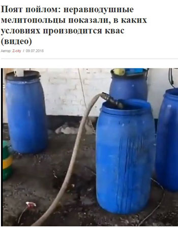 «Неравнодушная жительница Мелитополя сняла на видео условия, в которых производят бочковой квас. Антисанитария - как в фильме ужасов. Но больше всего позабавила причастная к производству «отравы» гражданка, которая все время, пока длилась съемка, причитала: «Вы не имеете права снимать!», - писали летом этом года некоторые запорожские СМИ.