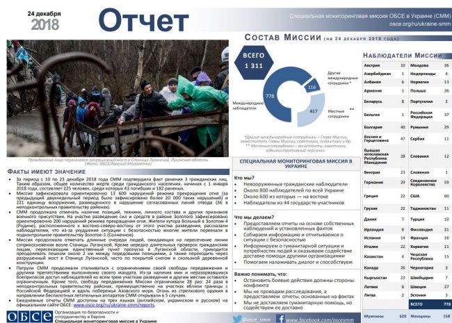 Только за последние две недели декабря на фронте было зафиксировано около 13,6 тыс. нарушений режима прекращения огня и 221 единицу вооружения, размещенного в нарушение договоренностей по отводу тяжелого вооружения.