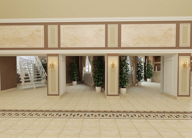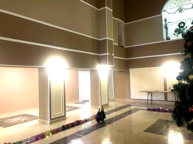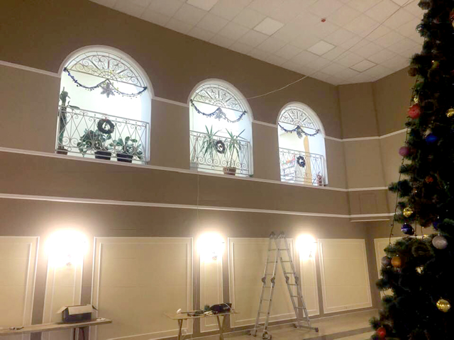 Подрядчик успел до Нового года выполнить работы по внутренней отделке фойе, которые осуществлялись по отдельному дизайнерскому замыслу. И результаты оказались впечатляющими.