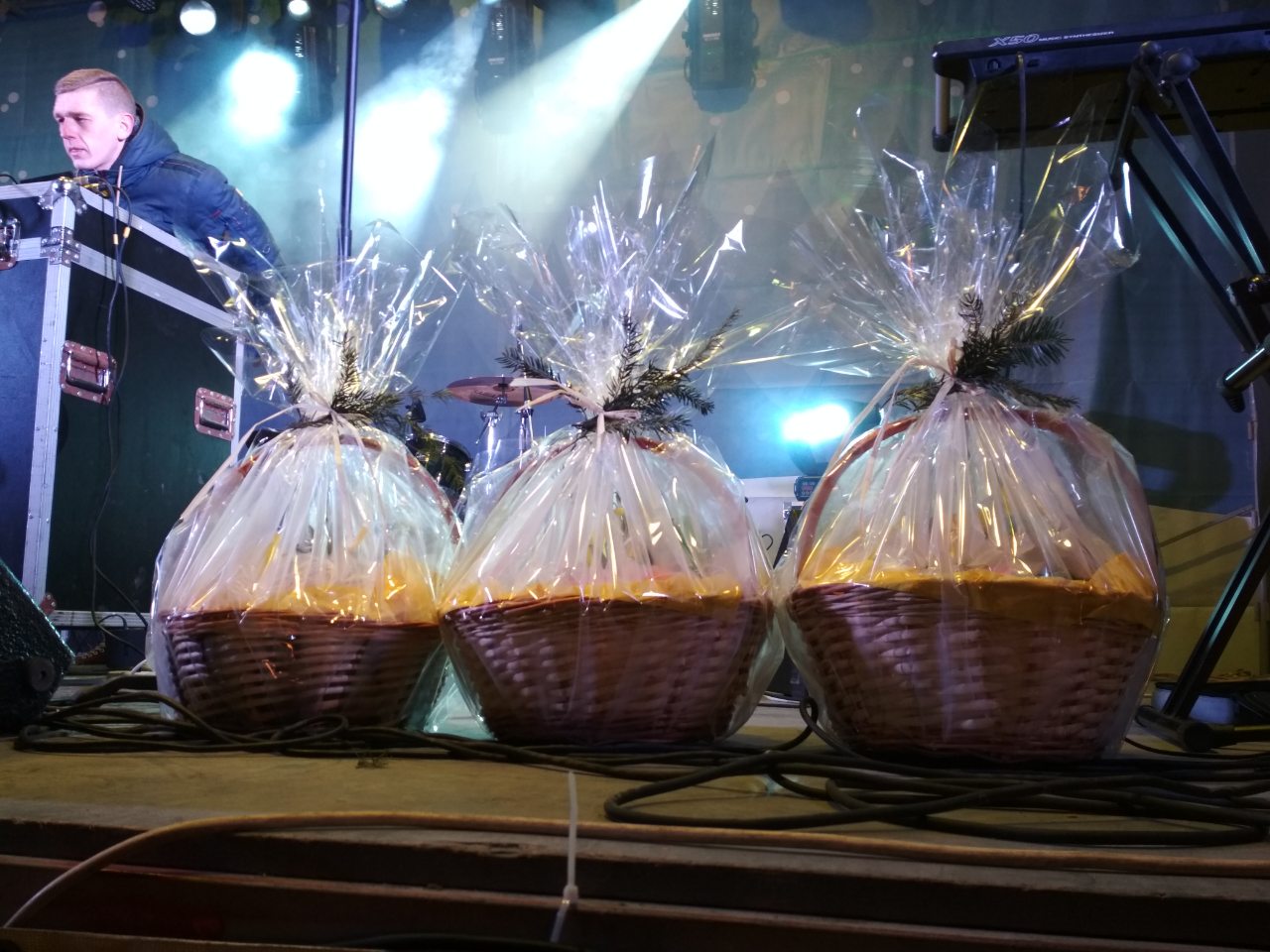 Также на новогоднем концерте проходил розыгрыш призов. Каждый мелитополец мог принять в нем участие. Достаточно было лишь приобрести любой товар на ярмарке от мелитопольского производителя. С помощью лототрона выбрали счастливчиков. Победитель получил путевку на двоих в Закарпатье. Было ещё два победителя, которым вручили витаминные корзины из фруктов.