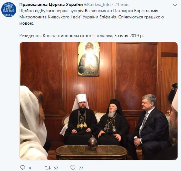 В частности сообщается, что это было первая встреча между Вселенским Патриархатом Варфоломеем и Митрополитом Киевским Епифаним. Она прошла в Стамбуле, в резиденции Константинопольского Патриарха.