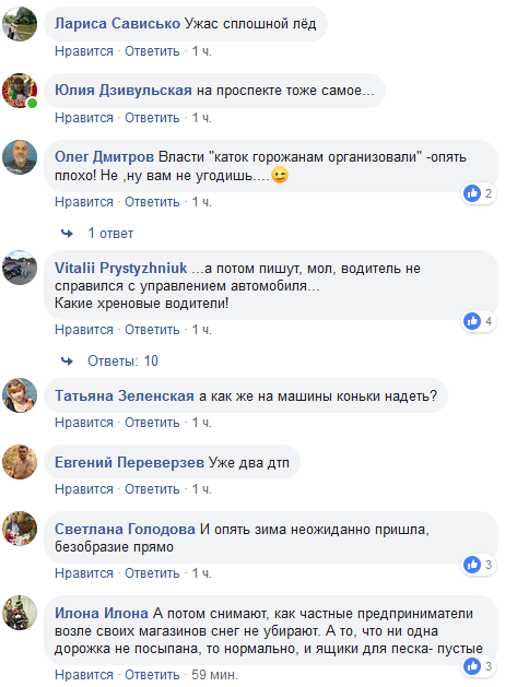 Мелитопольцами в соцсети горячо обсуждается тема катка, в который превратился город еще вчера вечером. Большинство дорог города стали недоступны для безопасного передвижения транспорта и людей. О приходе настоящей зимы и опасном положении стало известно заранее. В мэрии заранее заверили, что техника в порядке и посыпочные материалы в достатке. Однако дороги не были вовремя обработаны.