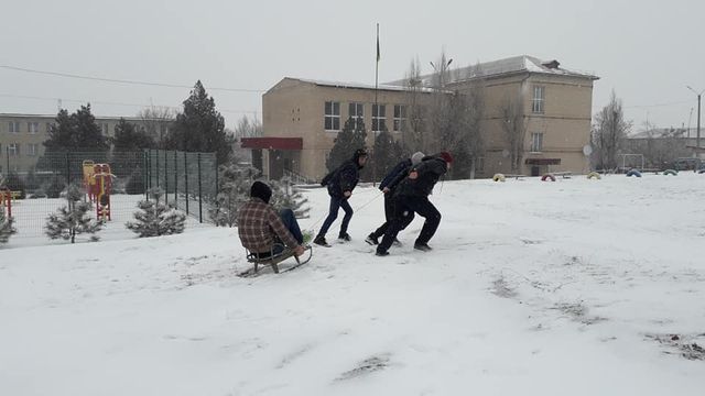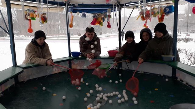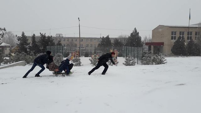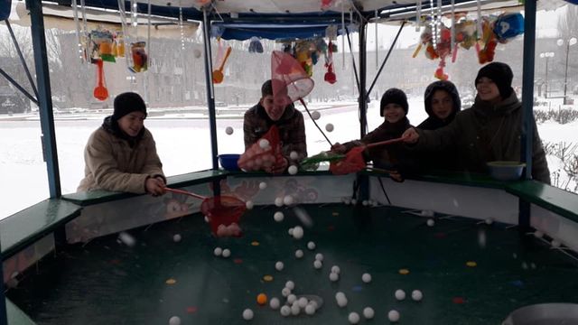 Утром ученики КЗ «Терпеньевская специальная общеобразовательная школа-интернат» Запорожского областного совета, которые остались в школе на зимние каникулы, получили первые подарки: для них организовали веселые снежные забавы и веселые эстафеты.