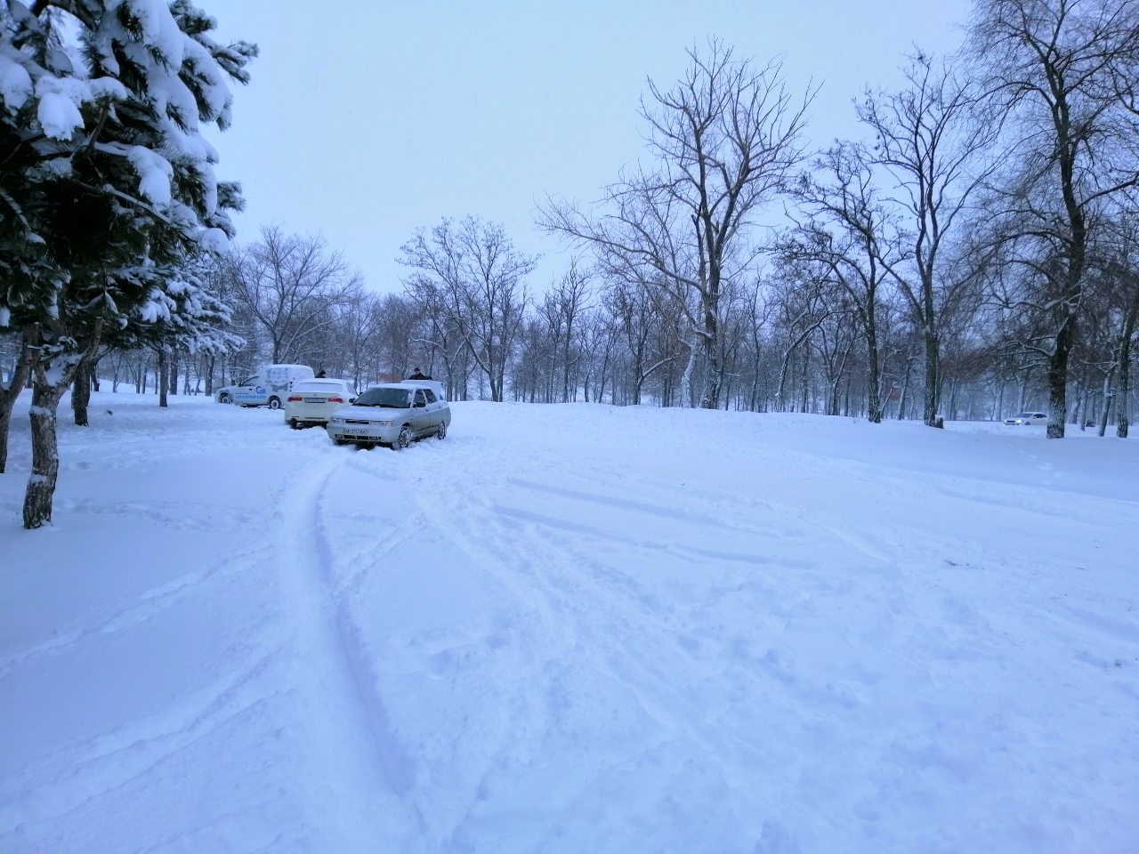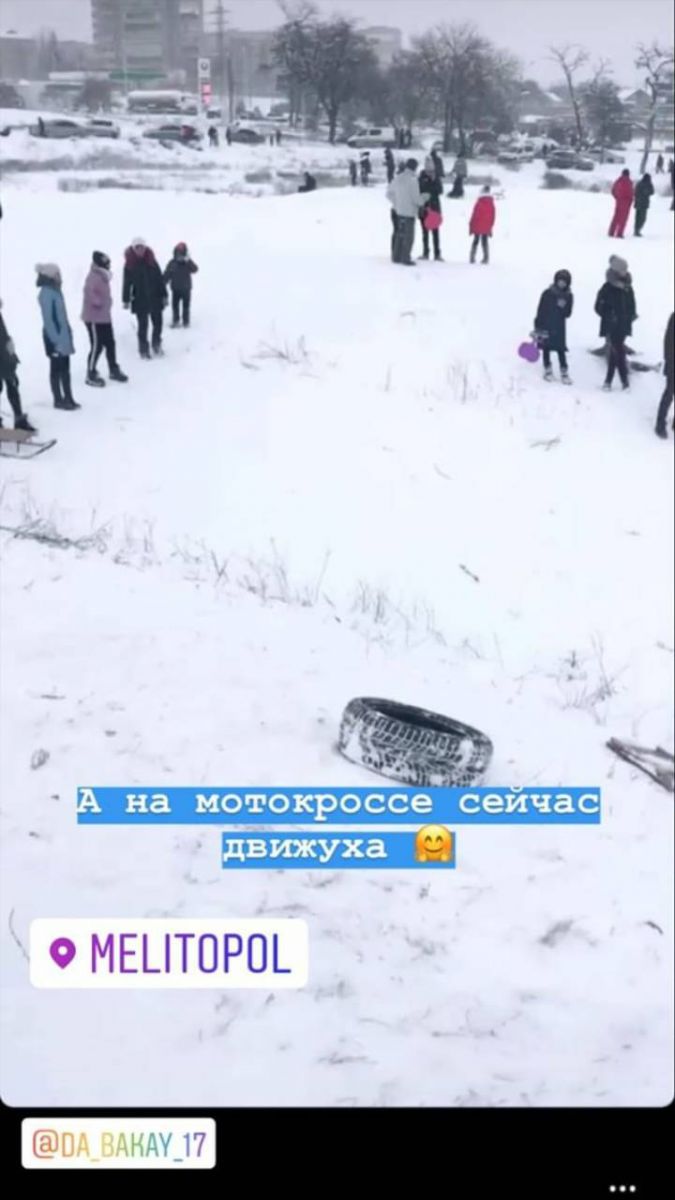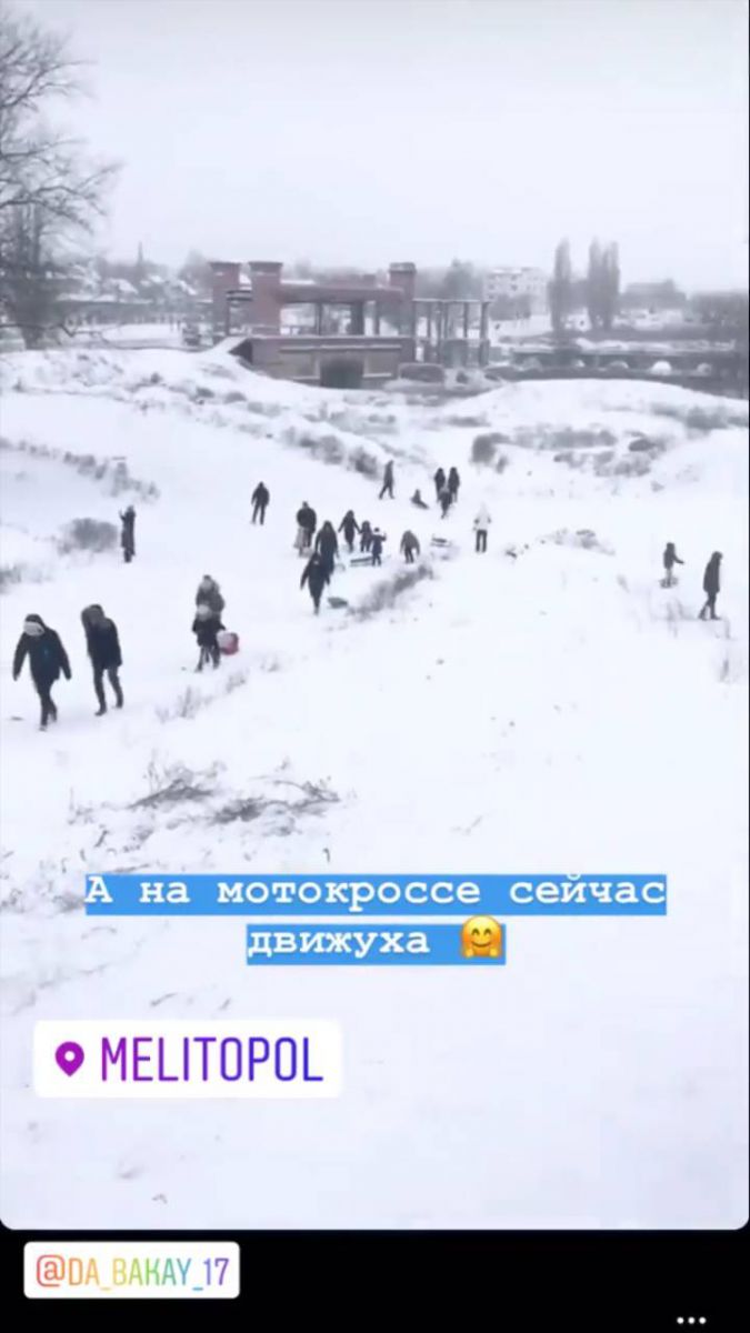 В Мелитополе снег идет уже больше суток и много людей вышли на улицы города веселиться. От мала до велика веселятся во дворах, парках и Лесопарке. Шумные толпы людей отмечают Рождество по колено в снегу.