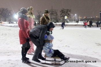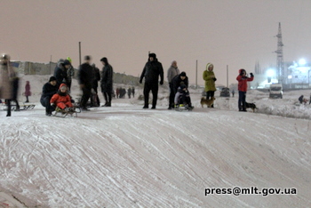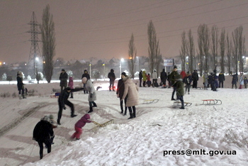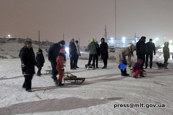 В итоге вечером 8 января в районе Песчаного ручья собралось более сотни мелитопольцев. На освещенной территории, под зажигательную музыку, с санками и другими приспособлениями для катания они с удовольствием испытали различные горки.
