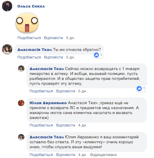 «Отнесли обратно?», «Нет слов, чтоб еще и лекарство так меняли…», «Все насыпается в нелегальных складах, ужасные условия труда! В какие препараты верить?», «Макароны могла сама клиентка насыпать и вызвать ажиотаж», — пишут под постом.